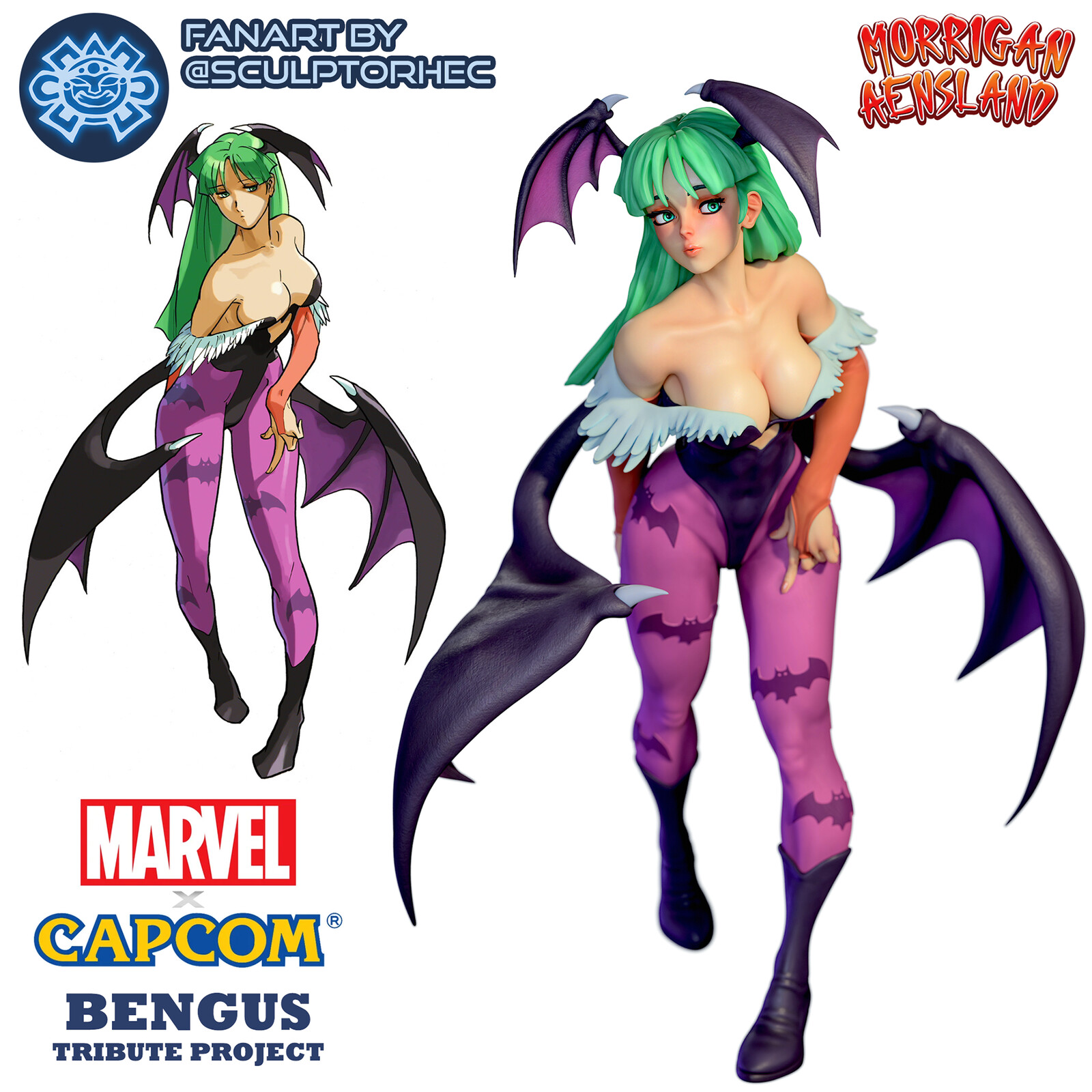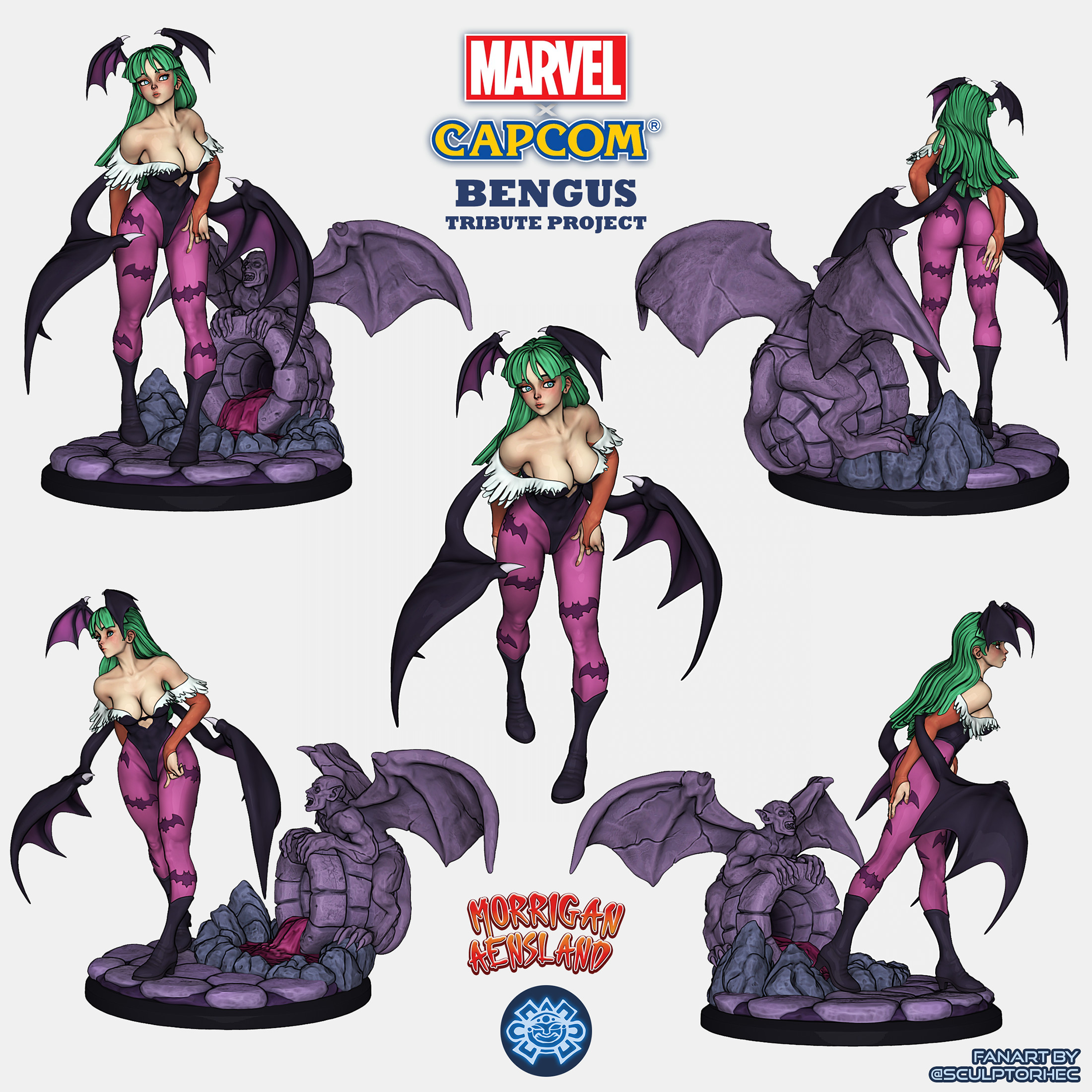Been a huge fan of many Capcom fighting game artists for a long time, so I decided to have some fun. This is part of a big tribute project to Marvel vs Capcom art and to Capcom artist Bengus' (Naoto Kuroshima) art and designs for those games. Second of several MvC sculpts. Available for free download on my store here and on MyMiniFactory.